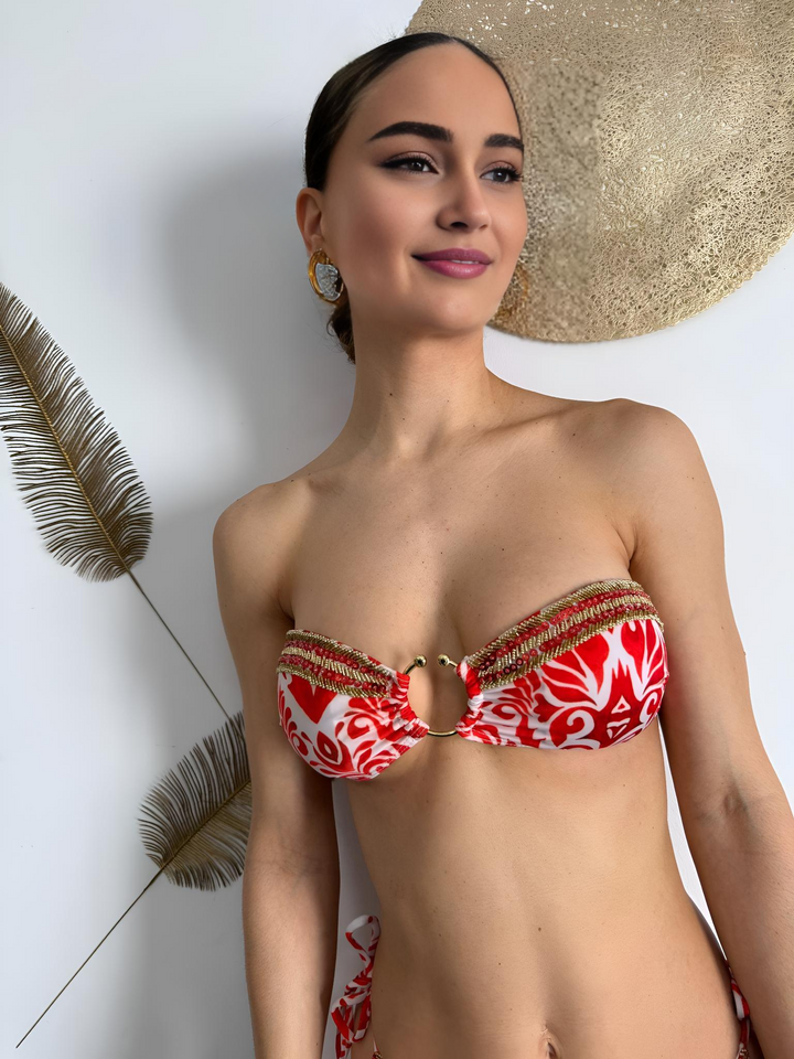 Two-piece bikini with a sophisticated design and striking print. The bottom features a brief cut that offers comfortable and flattering coverage—perfect for stylish sun-filled days.