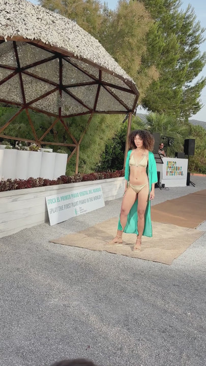 Triangle bikini with a heart detail at the center, perfect to enhance the silhouette with an elegant and timeless design.